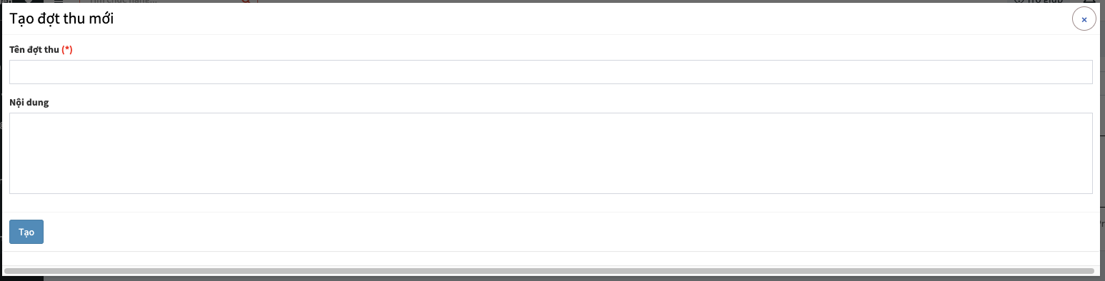 Thêm mới đợt thu sẽ có thông tin như Tên đợt thu và nội dung mô tả đợt thu