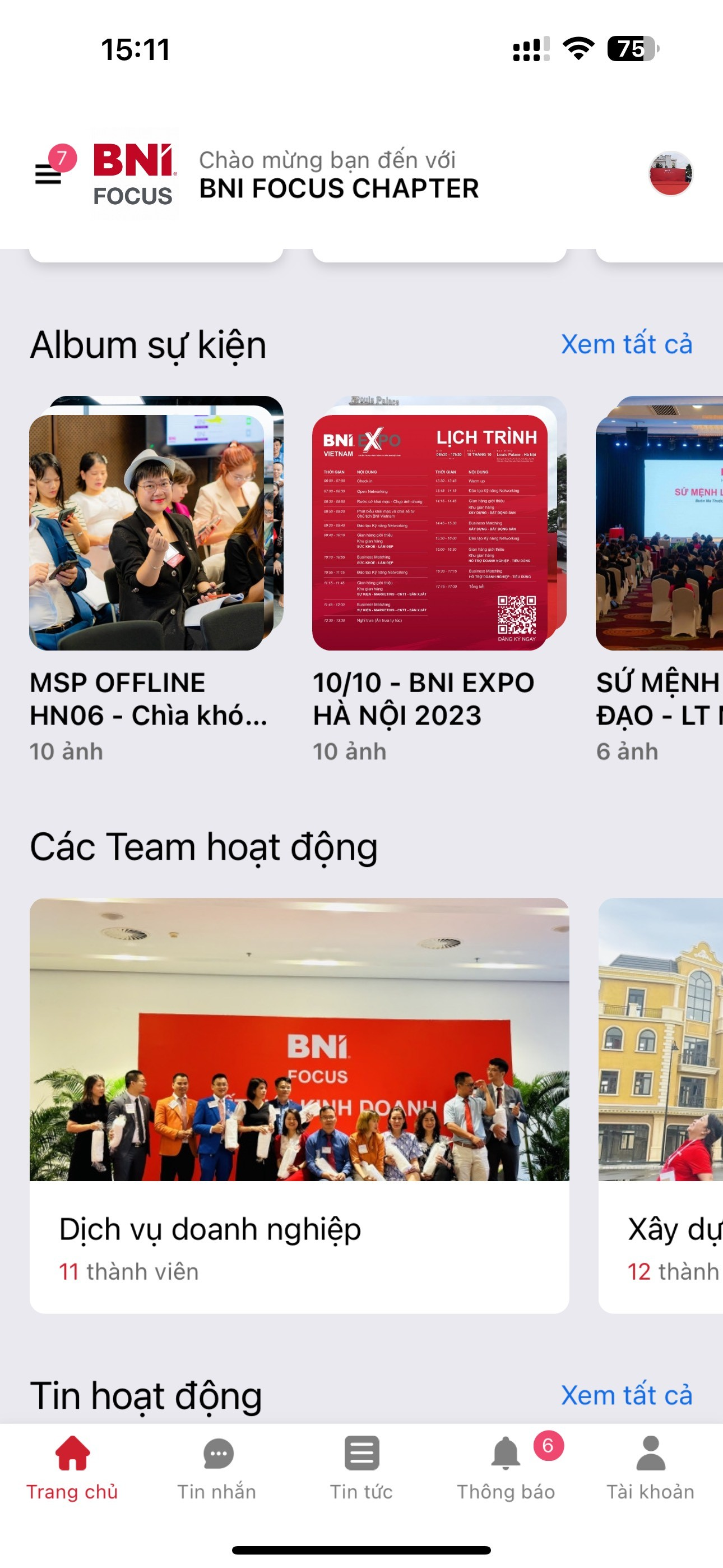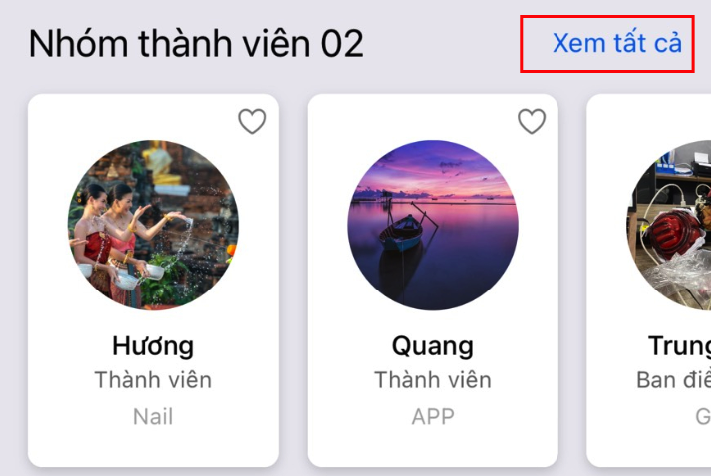 Các nhóm thành viên sẽ được lần lượt hiển thị tại trang chủ, người dùng có thể ấn [Xem tất cả] để mở trang danh sách tất cả thành viên trong nhóm đó.