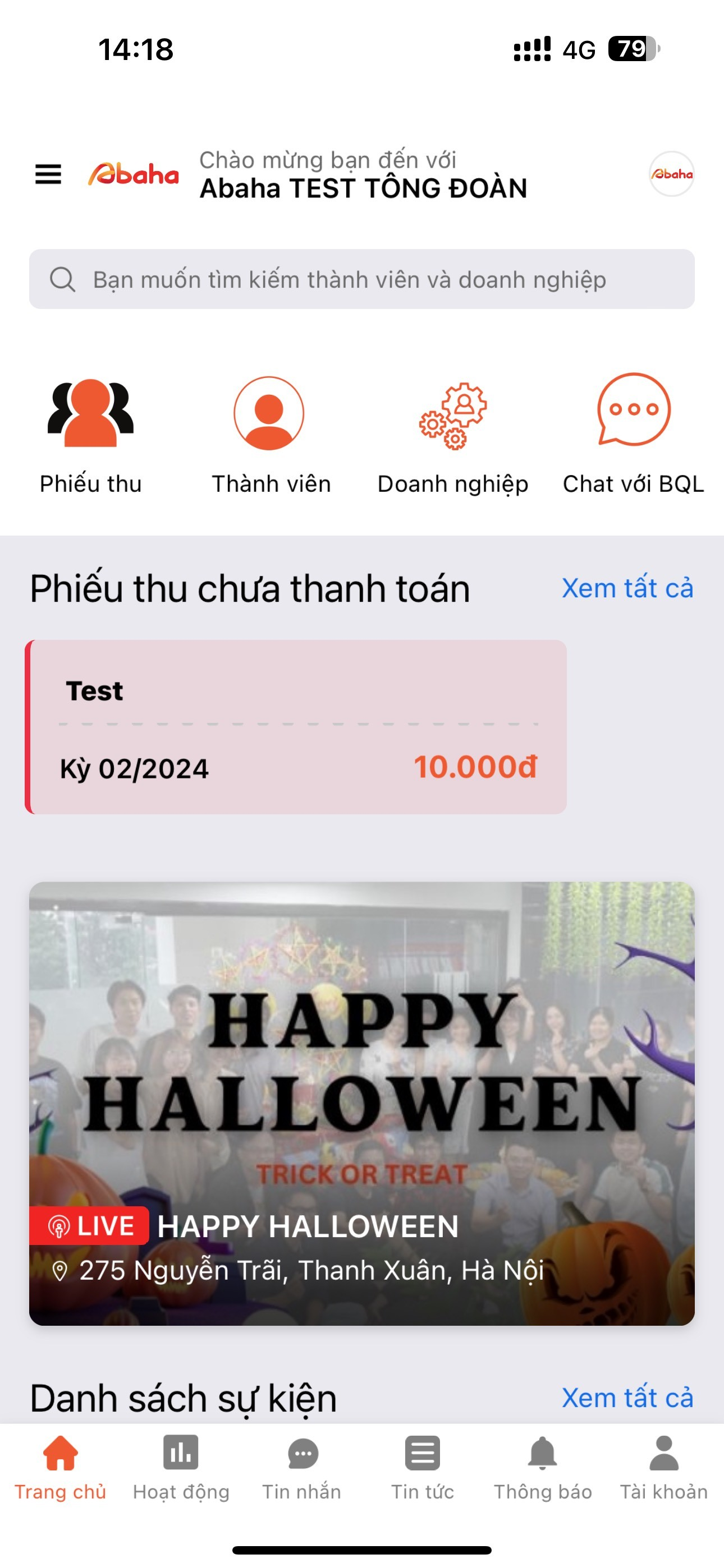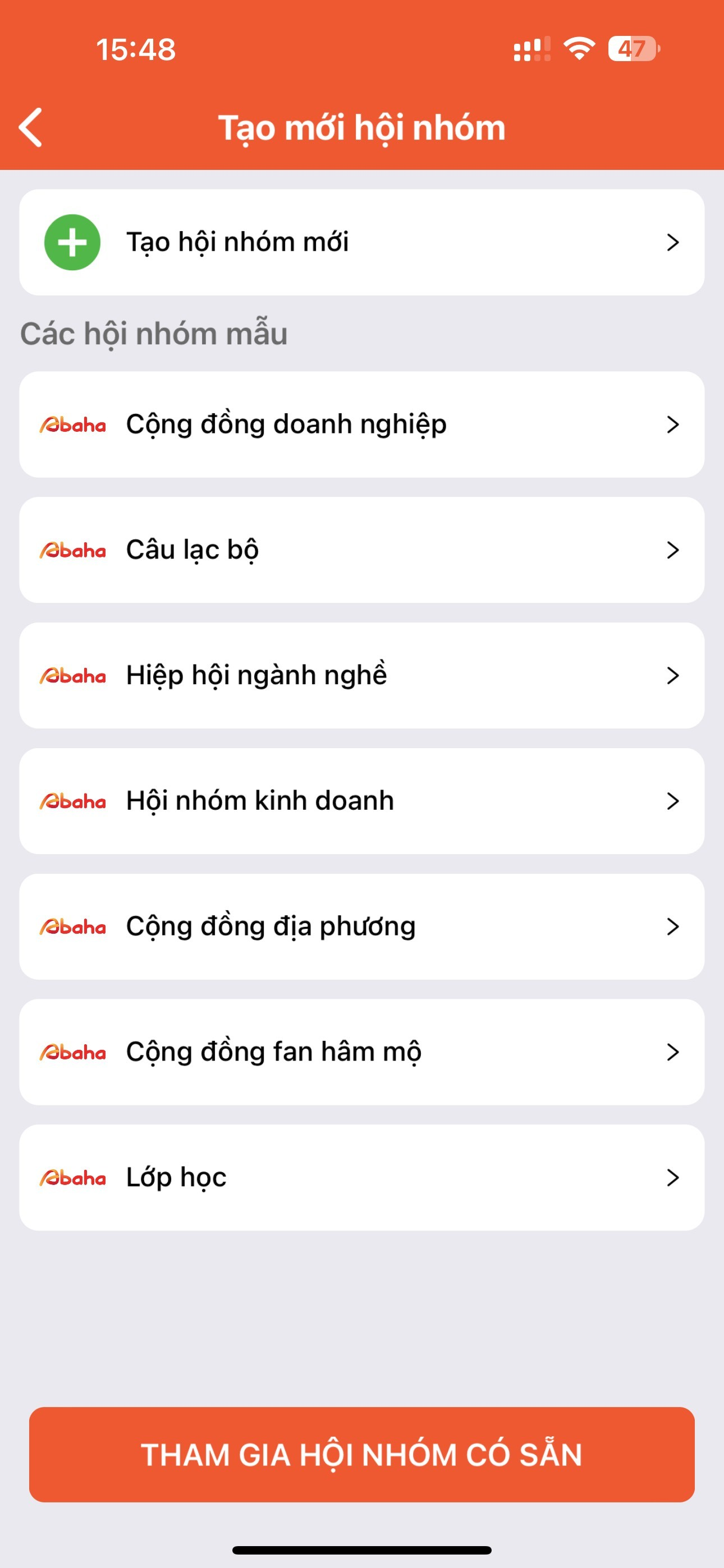Chức năng tạo mới hội nhóm nhanh dành cho các thành viên(Để được cấp quyền tạo nhanh hội nhóm trên App vui lòng liên hệ với Abaha).