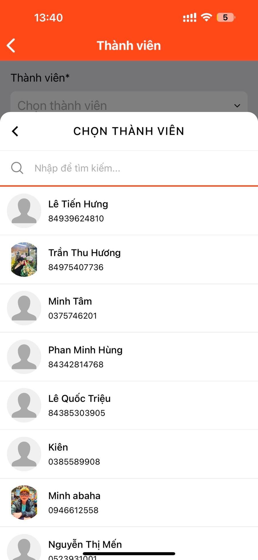 (Admin có thể tìm kiếm user theo tên hoặc số điện thoại)
