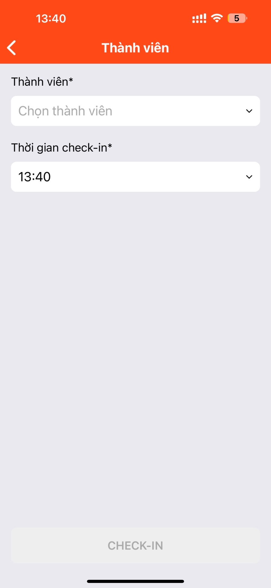 b) Chức năng Thành viên: giúp Admin có thể check-in hộ cho các thành viên khi gặp sự cố bao gồm thông tin thành viên và thời gian check-in(Sẽ chỉ chọn được thời gian trong ngày hiện tại)