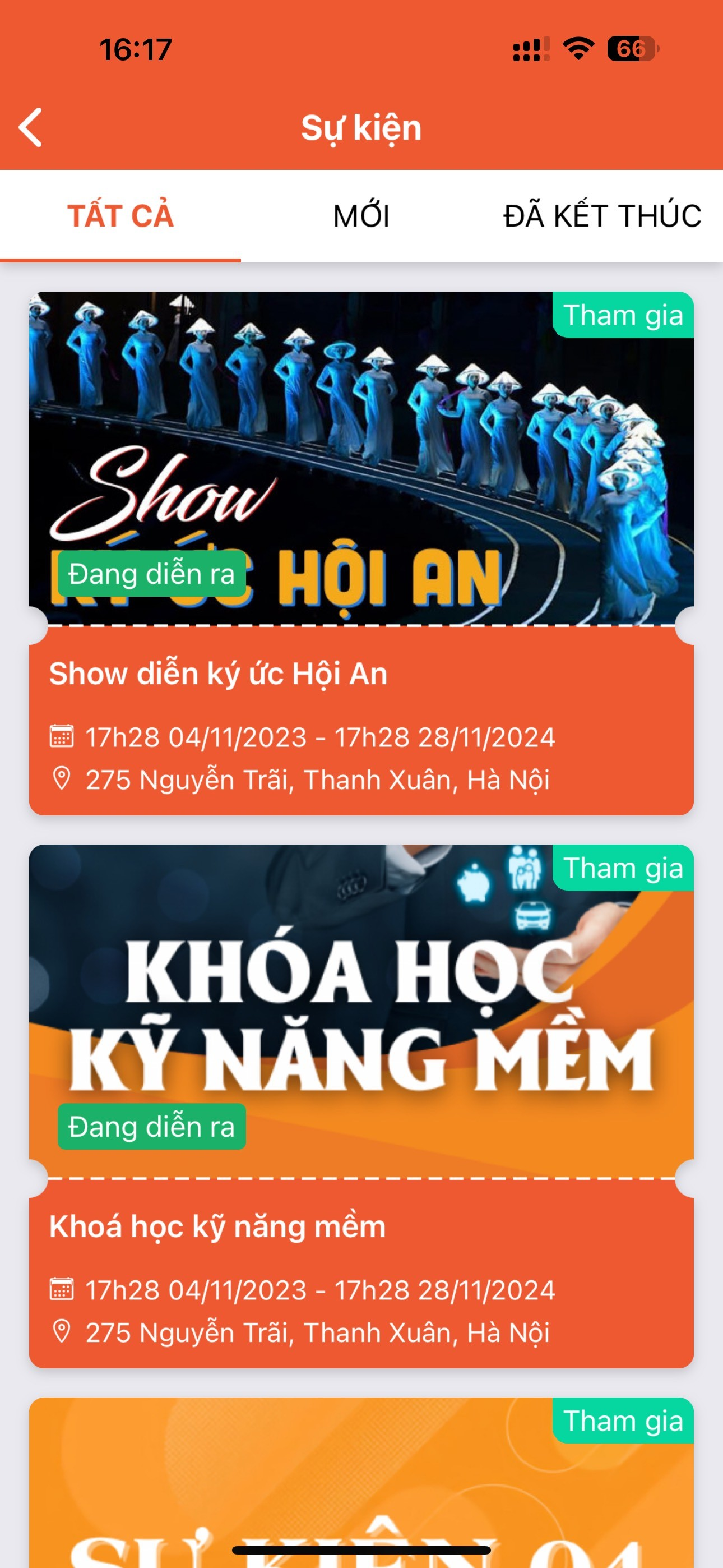 MỚI: Hiển thị những sự kiện Sắp diễn ra và Đang diễn ra. mặc định vào sẽ là tab MỚI