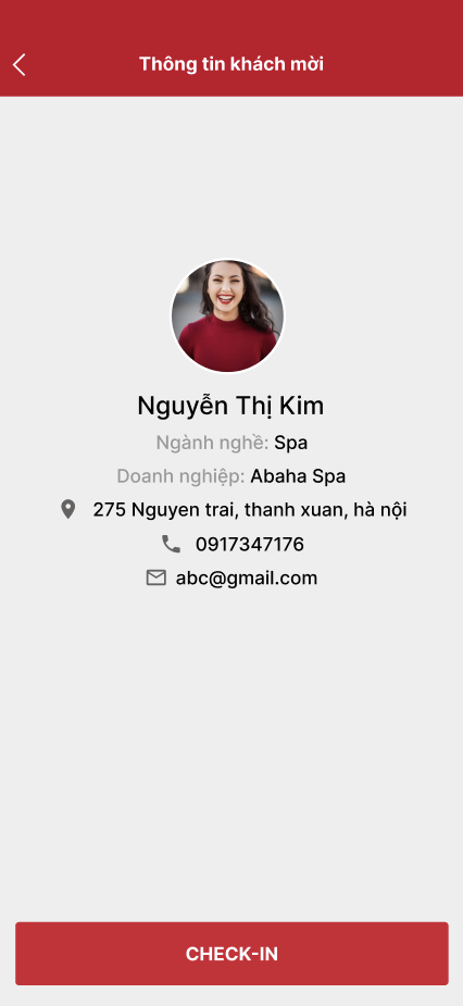 + Admin chọn check-in để đánh dấu khách mời này đã đến tham gia sự kiện