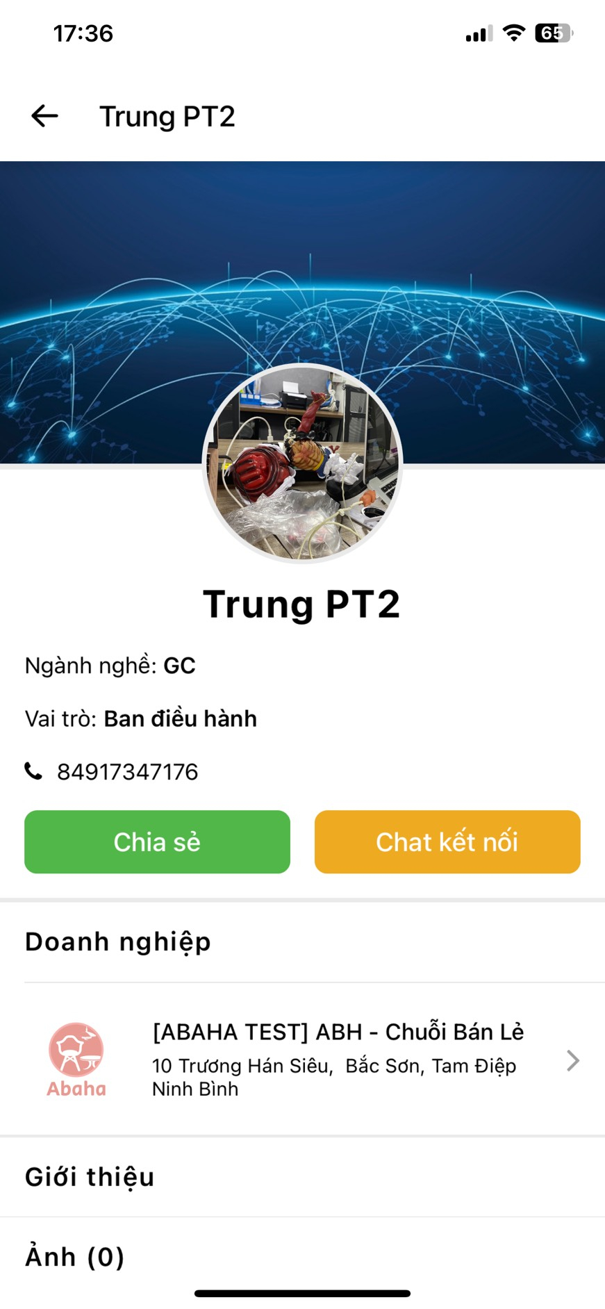 Bạn có thể Chat kết nối với thành viên hoặc chia sẻ profile thành viên tới các thành viên khác bằng cách ấn nút Chia sẻ.