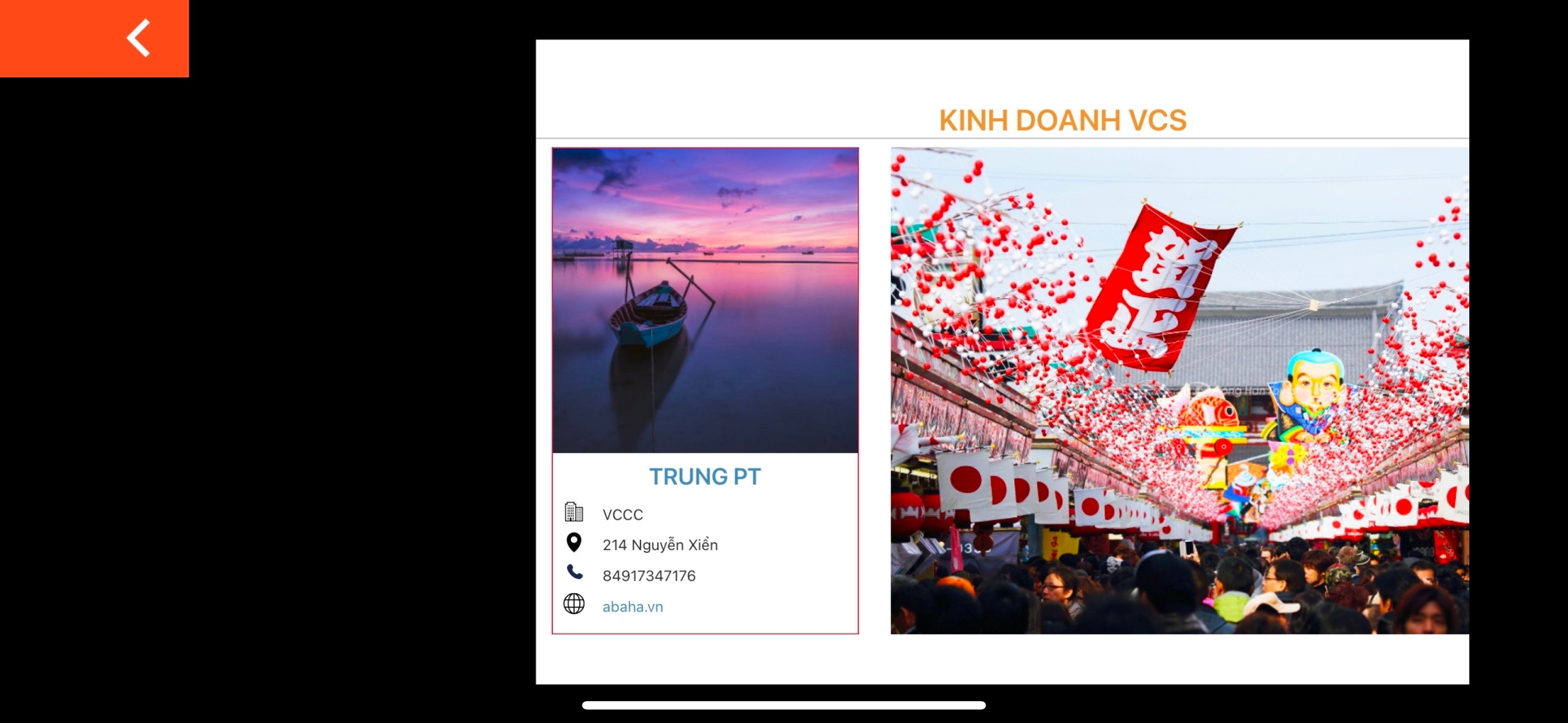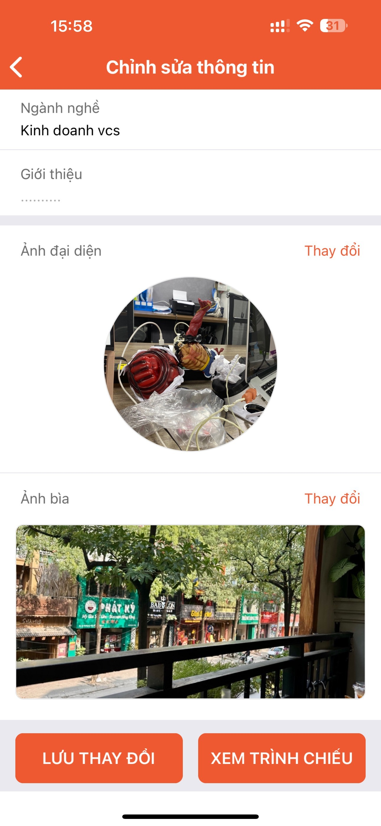Ngoài ra sẽ có thêm nút "Xem trình chiếu ". Khi nhấn vào sẽ hiển thị slide trình chiếu thông tin của khách hàng như Ảnh đại diện, Ảnh bìa, số điện thoại, địa chỉ,...