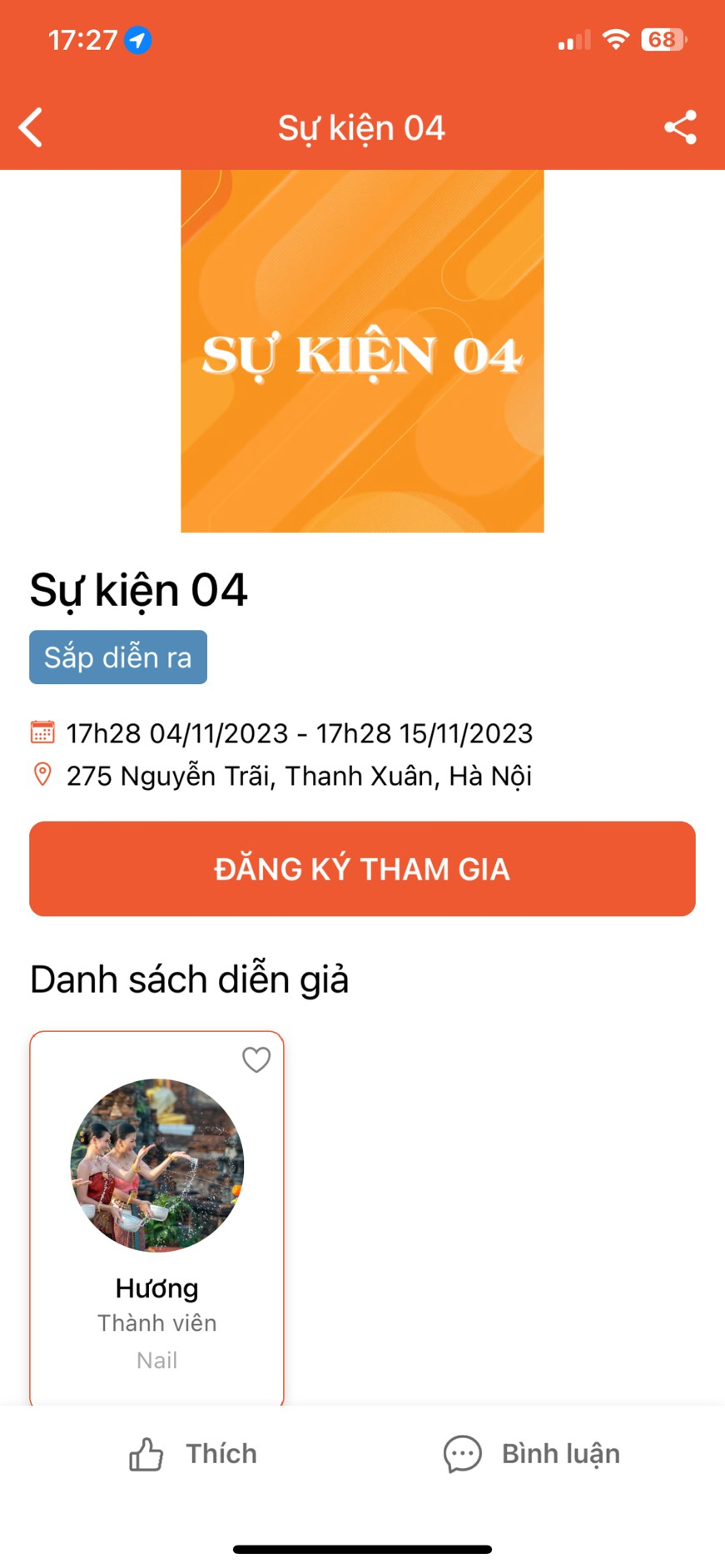 Trang chi tiết sự kiện sẽ hiển thị chi tiết thông tin sự kiện bao gồm: