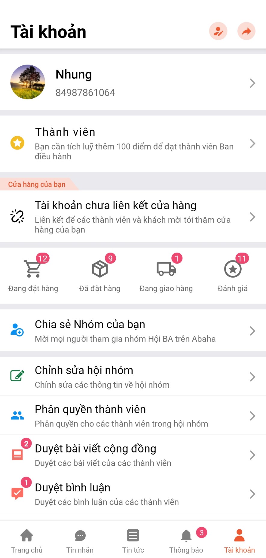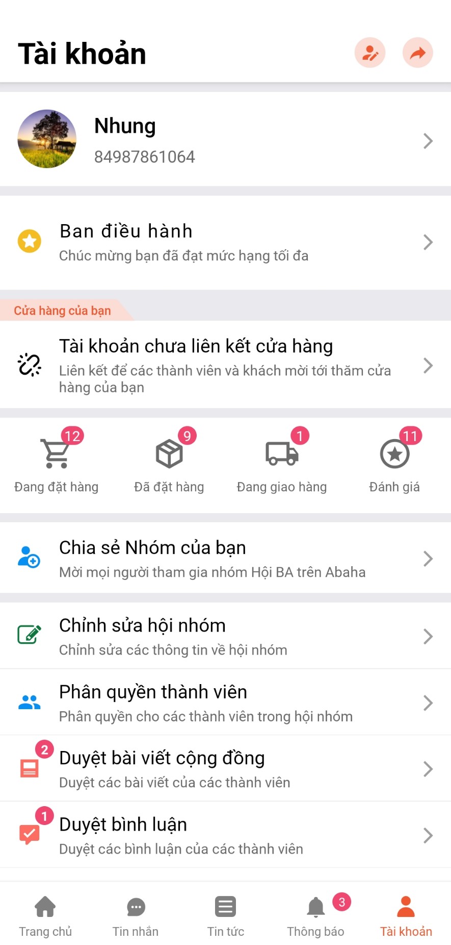 Các chức năng này sẽ chỉ hiển thị đối với tài khoản có quyền trong hội nhóm này, các khách hàng bình thường sẽ không nhìn thấy các chức năng này được.