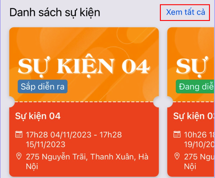 Tại mục Danh sách sự kiện tại trang chủ, người dùng ấn xem tất cả để mở trang Danh sách sự kiện.