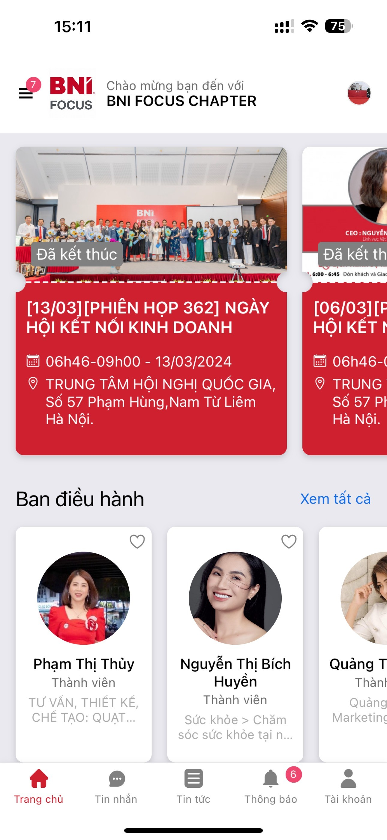 Bạn có thể truy cập nhanh tới danh sách thành viên, doanh nghiệp, sự kiện, ... thông qua menu tại trang chủ.