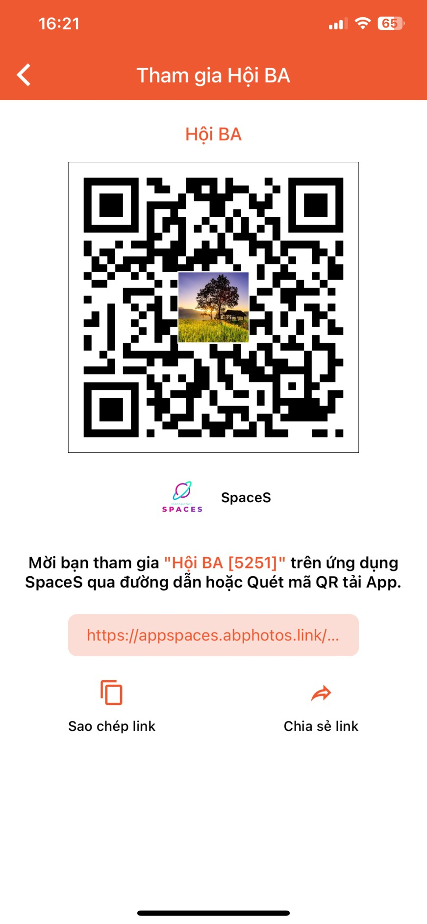 Người dùng ấn "Chia sẻ link" hoặc chụp ảnh màn hình mã QR để gửi tới những người muốn chia sẻ về sự kiện.