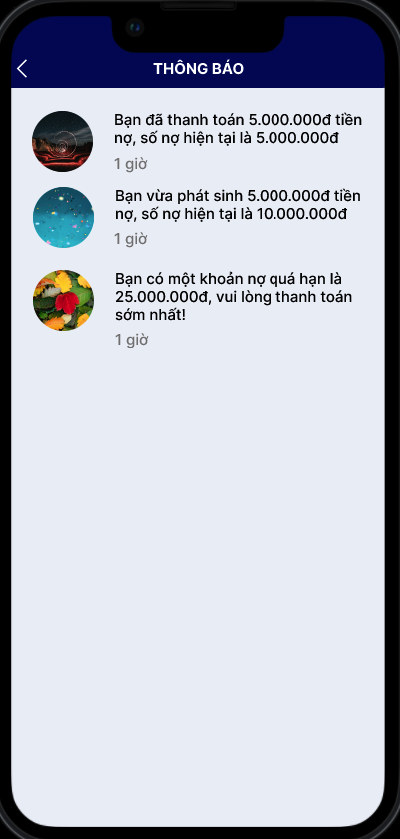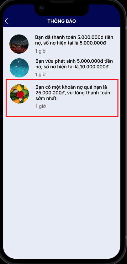 Cảnh báo sẽ được gửi hằng ngày vào 7-8 giờ sáng. Khách hàng sẽ nhận được thông báo nhắc nợ từ app
