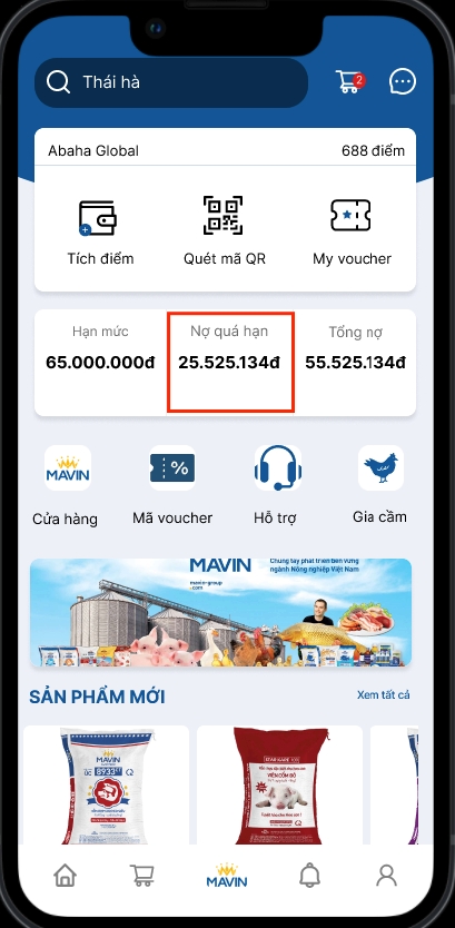 Ô này sẽ hiển thị nếu site bật cấu hình hiển thị công nợ trên app và khách hàng đó công trong danh sách khách hàng nợ.