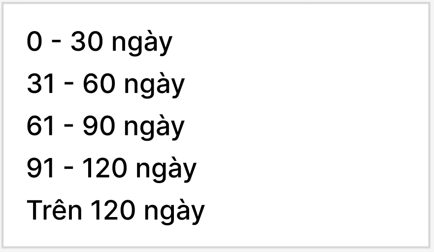 Số ngày nợ : Số ngày tối đa khách hàng được nợ.