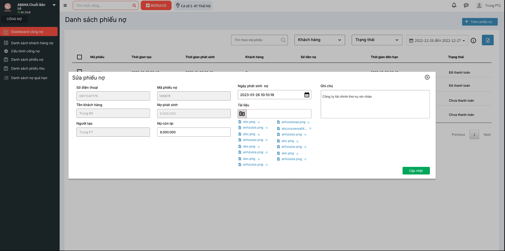 - Số tiền nợ còn lại của phiếu nợ