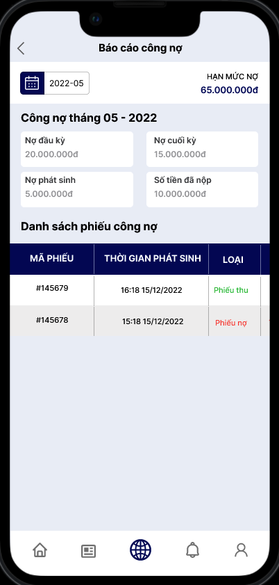 - Loại: Có 2 loại: Phiếu thu và phiếu nợ