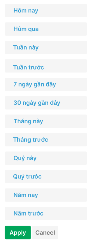 30 ngày gần đây, tháng này, tháng trước