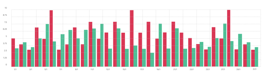 Biểu đồ thể hiện quá trình thay đổi nợ theo ngày, nếu lọc thời gian theo quý hoặc theo năm thì biểu đồ sẽ thể hiện theo tháng.Tổng nợ = Nợ đầu kỳ + nợ phát sinh - nợ đã thu