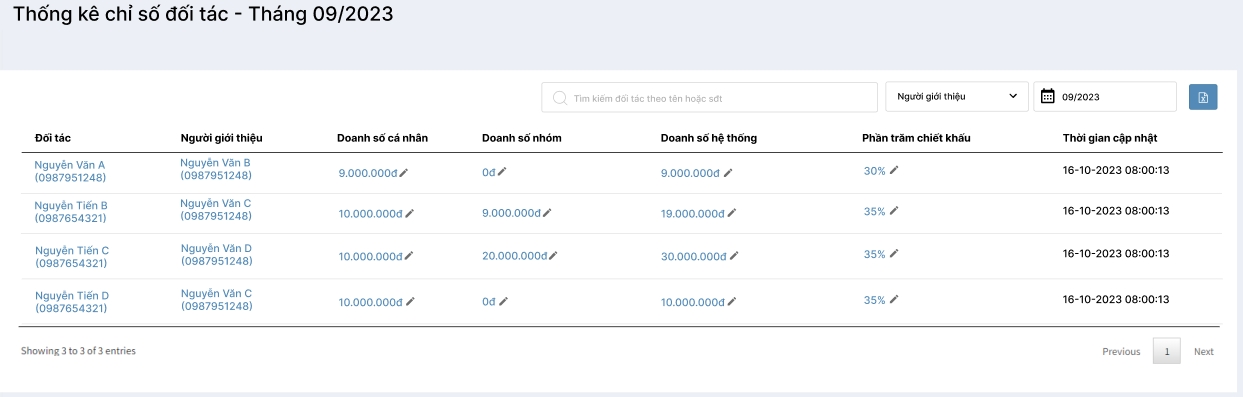 1.3 Xem thống kê danh sách đối tác trong 1 loại hoa hồng