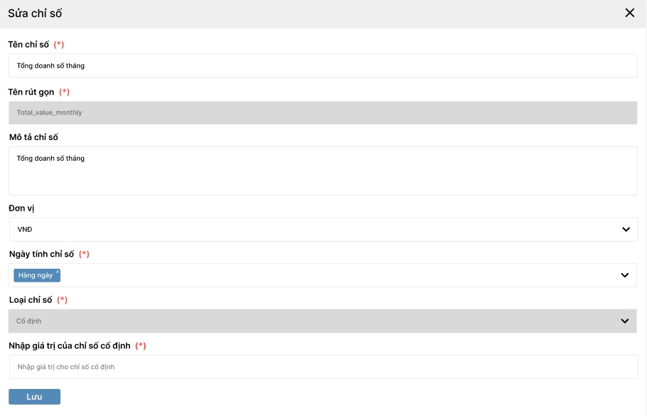 Bạn có thể sửa các tât cả các thông tin trừ Tên rút gọn và Loại chỉ số.