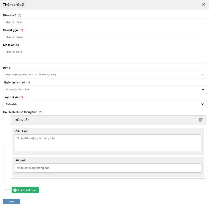 Cách truy cập: Click chức năng [Thêm chỉ số] từ trang Danh sách chỉ số.