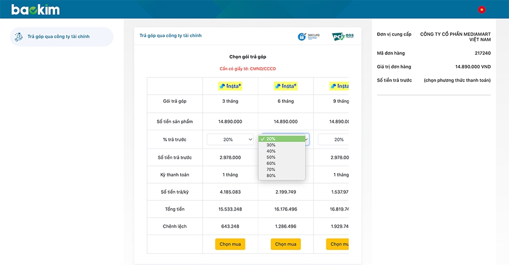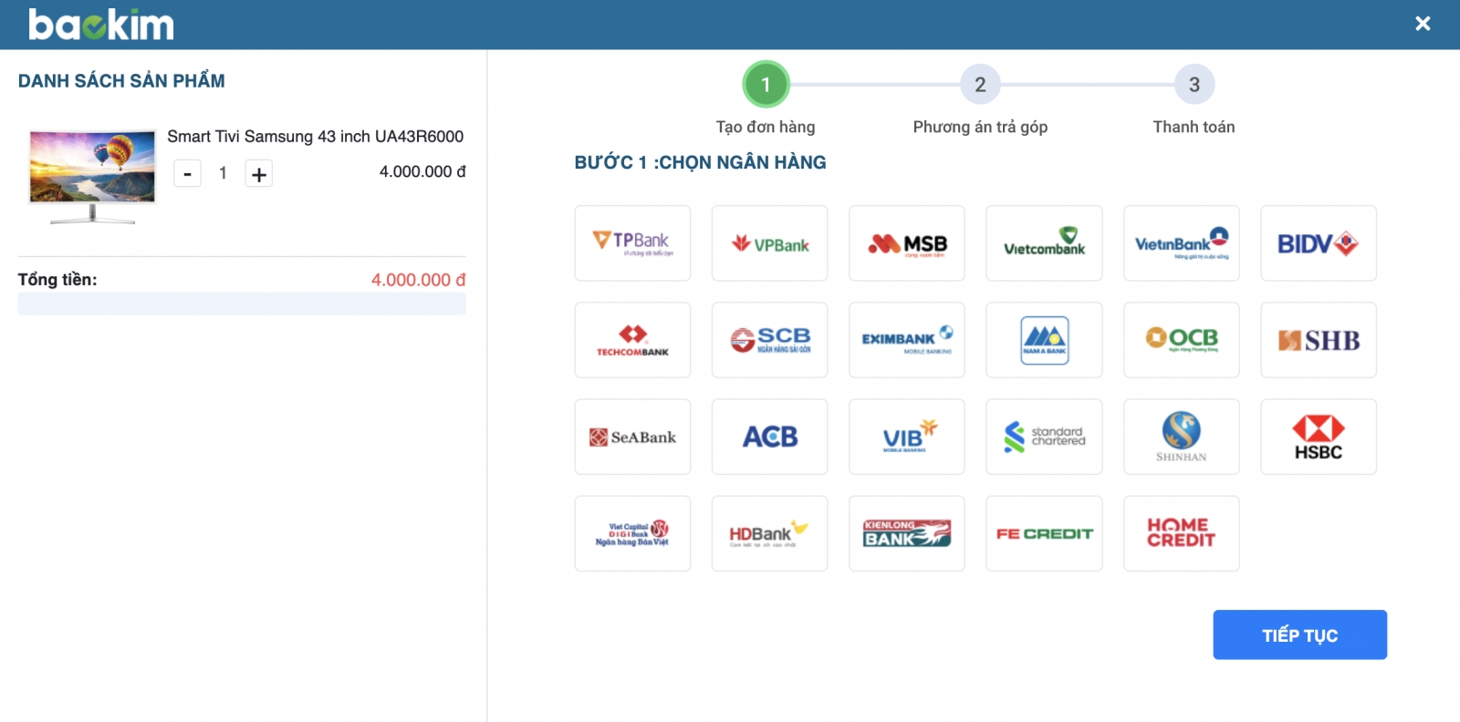 Bước 2: Chọn hình thức thanh toán Trả Góp Bảo Kim