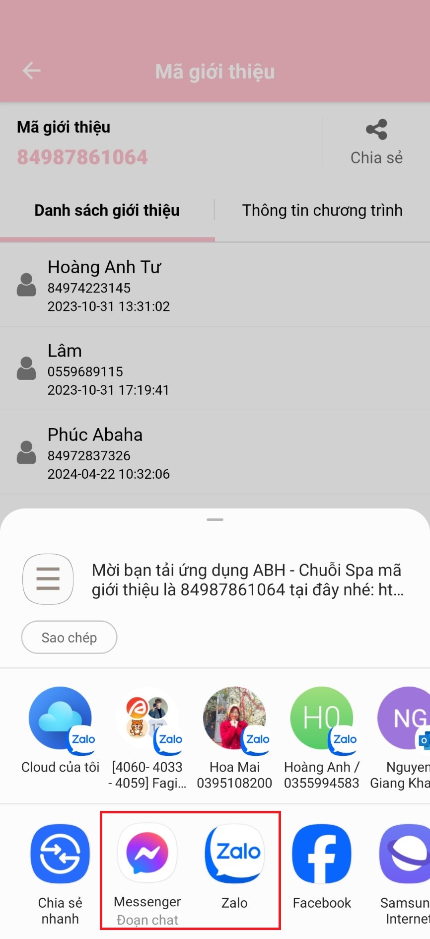 Bước 4: Chọn chia sẻ qua Zalo hoặc Messenger.