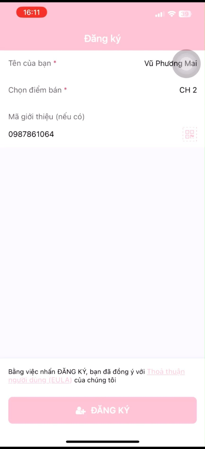 Bước 8: Nhập mã giới thiệu chính là SĐT người giới thiệu tải App trực tiếp.
