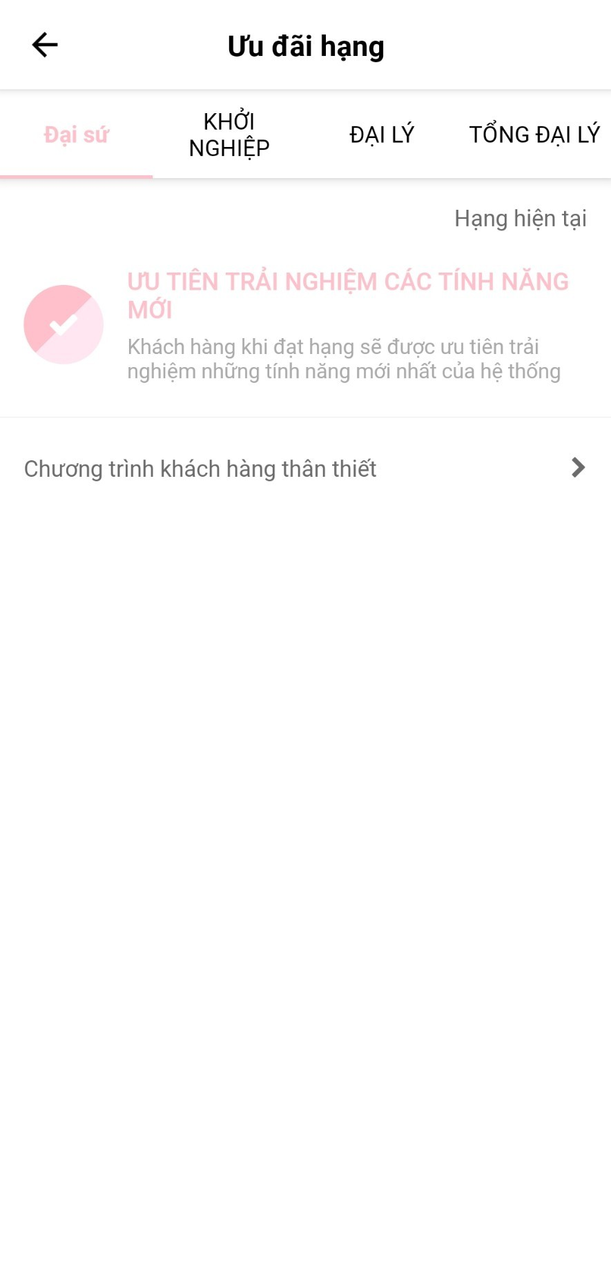 <figure><img src="https://4274594821-files.gitbook.io/~/files/v0/b/gitbook-x-prod.appspot.com/o/spaces%2F-MQa7fjZRtFKJkPsrqu5%2Fuploads%2F8ZSvLWxiOUJgj6mrpZOz%2Fimage.png?alt=media&#x26;token=306eb4d0-ff2a-40d3-bf24-01666e8fcc95" alt="" width="188"><figcaption><p>Chi tiết ưu đãi phân hạng Đại sứ</p></figcaption></figure>