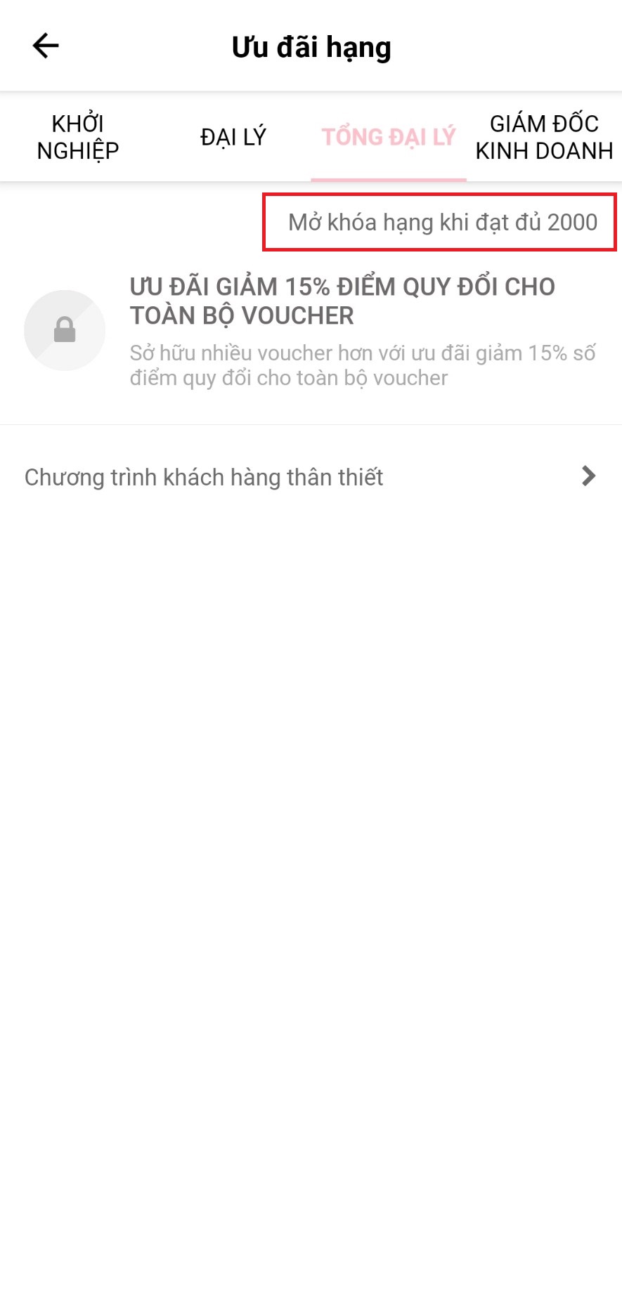 * Người dùng App không thuộc phân hạng này sẽ không nhìn thấy phân hạng đó tại màn hình Ưu đãi  hạng tại App&#x20;