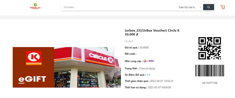- Trạng thái: trạng thái mã quà tặng