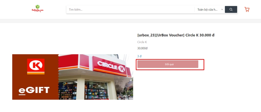 Khi thực hiện Đổi quà trên webshop với trường hợp đổi không thành công sẽ thông báo lỗi cho user. Với trường hợp đổi quà thành công sẽ mở ra màn chi tiết quà tặng đã nhận.