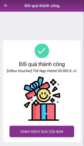 Màn hình đổi quà thành công