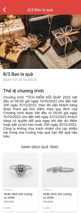 Trên ứng dụng cho phép khách hàng sử dụng điểm để đổi quà tặng của cửa hàng. Qua đó gia tăng trải nghiệm mua sắm cho khách hàng và xây dựng lòng trung thành của khách hàng với thương hiệu.