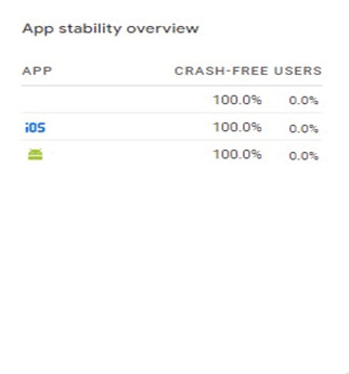 * **App stability overview:** Số lượng Users gặp lỗi khi sử dụng ứng dụng trên 2 hệ điều hành IOS và Android.