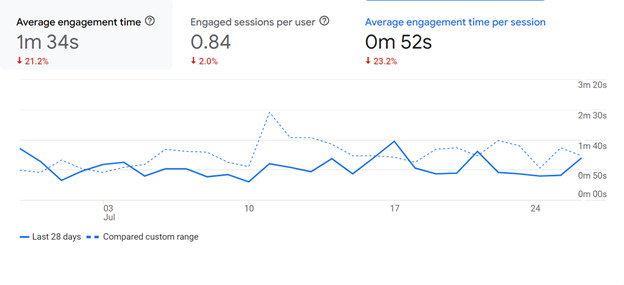* **Average engagement time per session** : Thời gian tương tác trung bình của khách hàng trong mỗi phiên sử dụng