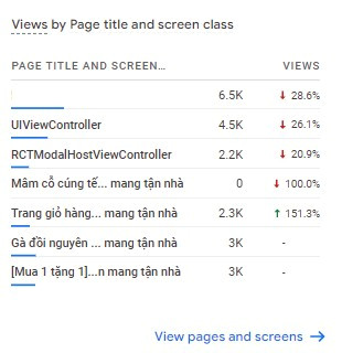 * **Views by Page title and screen class** : Tổng lượt xem của khách hàng theo từng tiều đề page hay các bài viết
