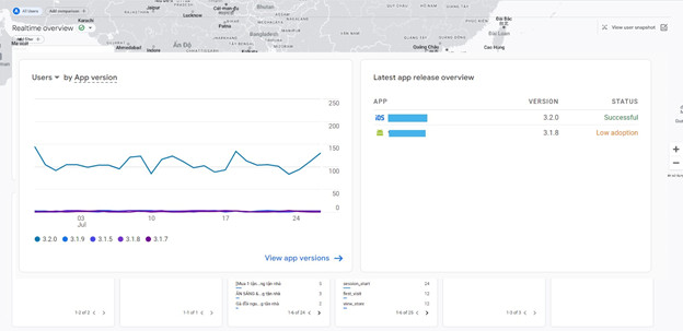 * **Users by App version**: Số lượng khách hàng đang sử dụng theo từng bản cập nhật của app.